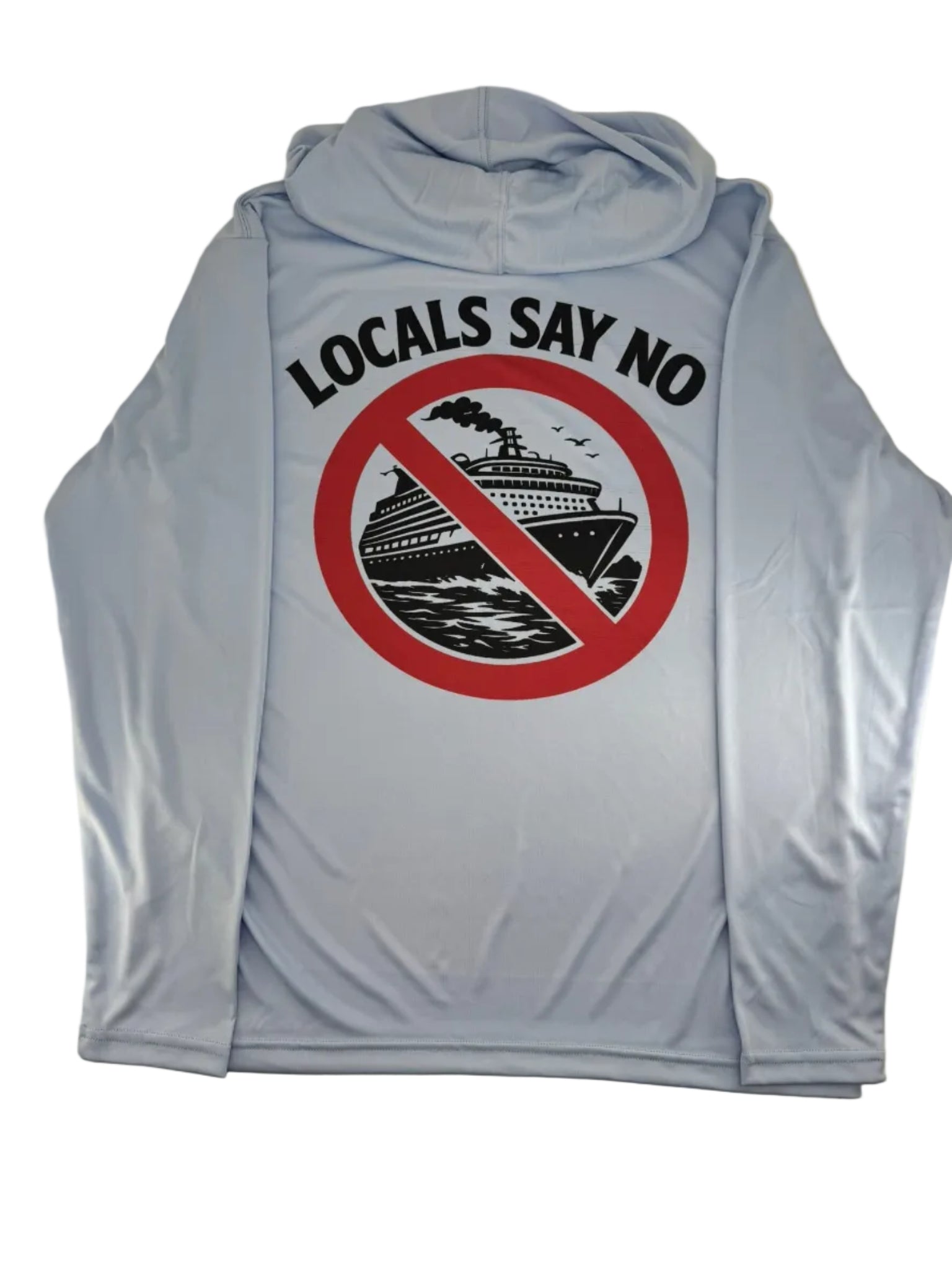 # Long Sleeve Hooded Fishing Shirt – LOCALS SAY NO to Cruise Ship Terminal being built.